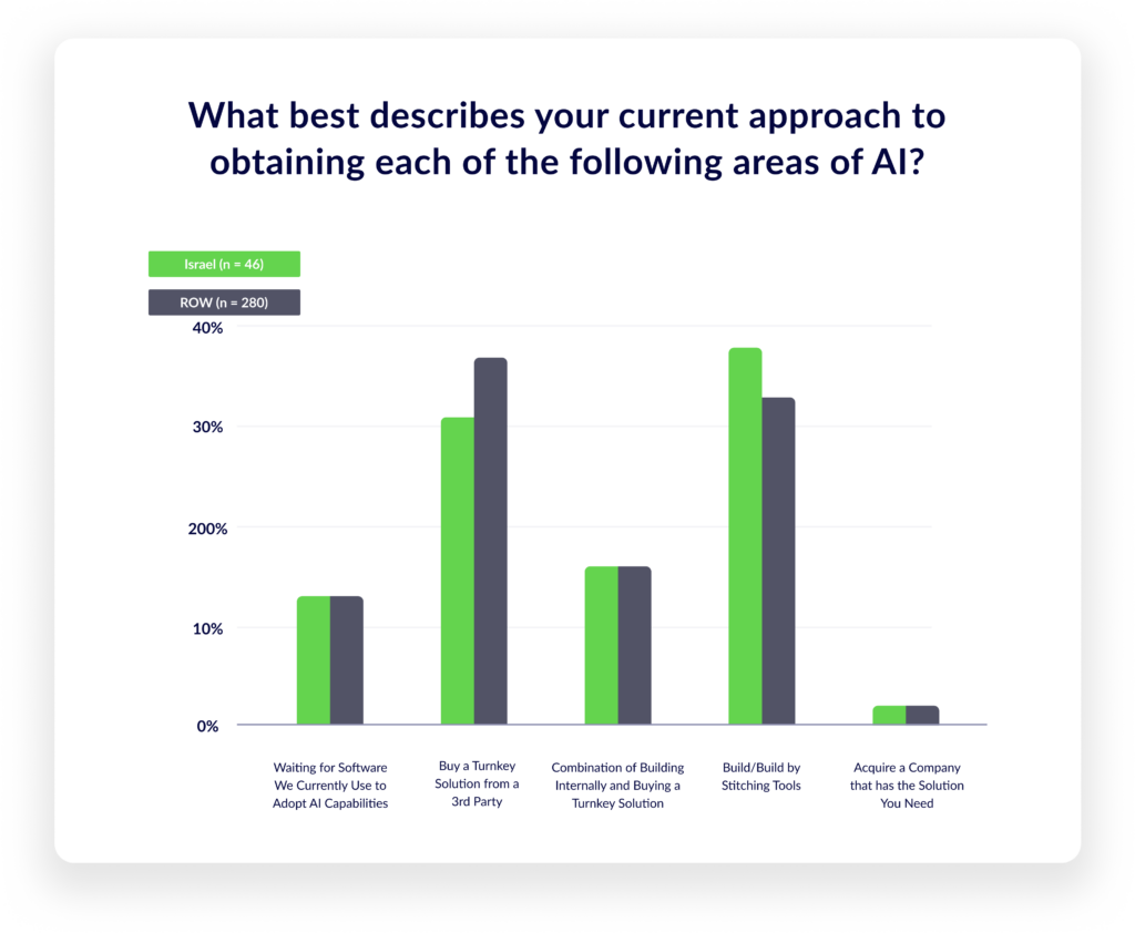 Israeli R&D teams, like their global peers, commonly buy third‑party solutions and build in‑house. No meaningful gap appears in the approach.