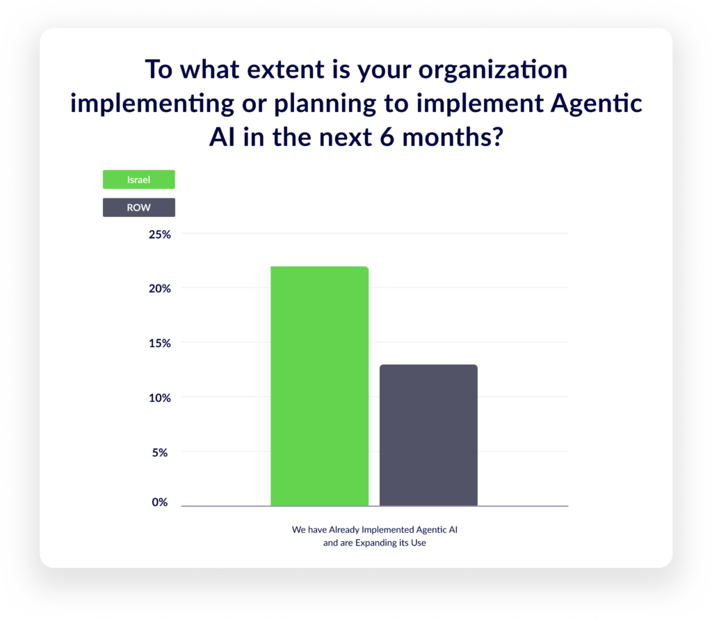 More Israeli companies report that agentic capabilities are already implemented and expanding, with over one‑fifth stating these capabilities are in place and being broadened.